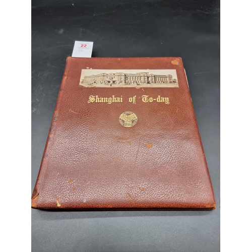 Posted: December 14th, 2022 | No Comments »This is a lovely copy of the quite rare Shanghai of Today, a souvenir album of thirty-eight Vandyke prints of the ‘Model Settlement’ published by the Shanghai/Hong Kong/Singapore huse of Kelly & Walsh in 1927. The original full padded morocco binding is lovely and comes with a picture of the Shanghai Municipal Council building (down on Kiangse/Jiangxi Road) and the seal/flag of the SMC. The book came with an introductuion by the long time editor of the North-China Daily News, OM Green.