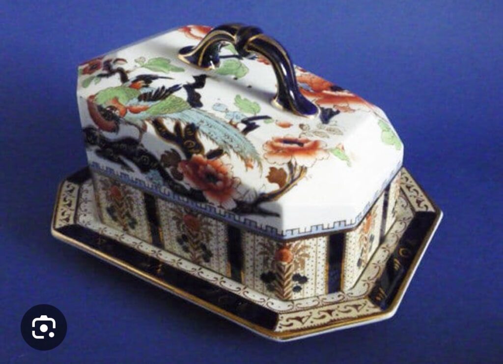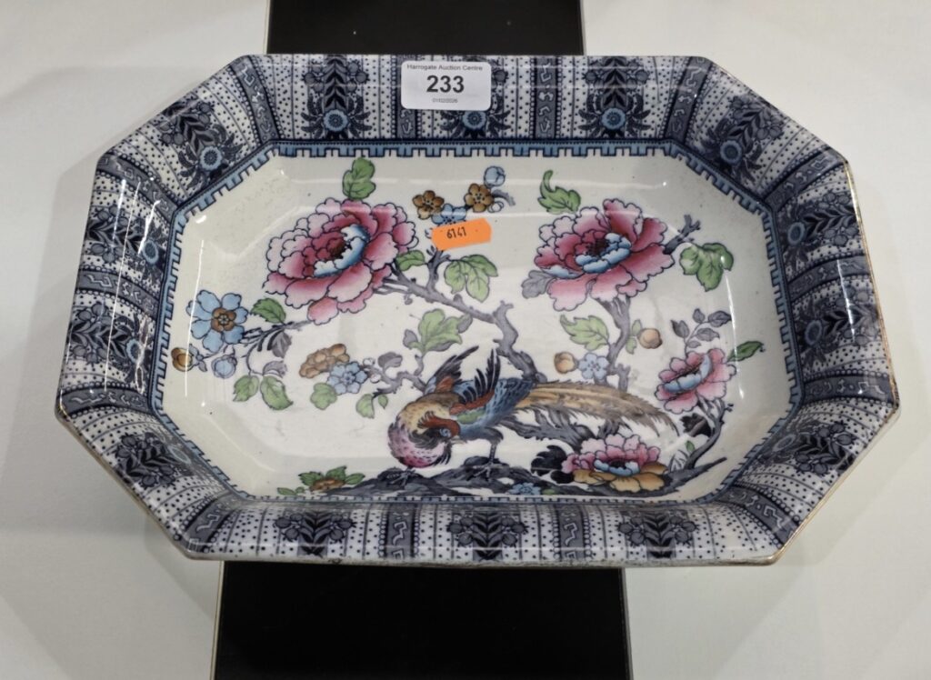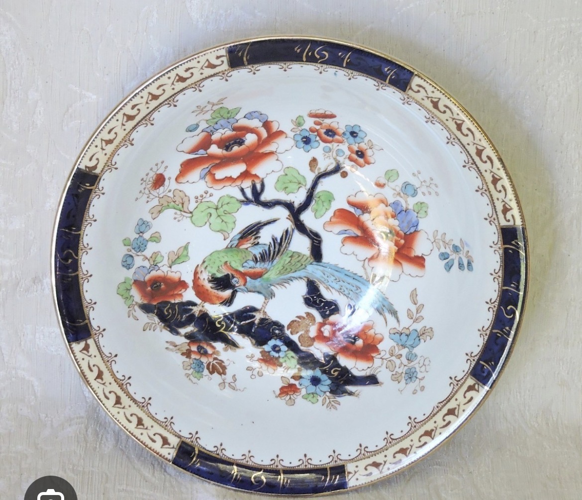 Examples of “Shanghai” range Losol (low solubility) brand ware, a highly collectable, c.1912–1936, Art Nouveau, flow-blue style earthenware manufactured by Keeling & Co Ltd. of Burslem, England. The “Shanghai” pattern features vibrant, multicoloured scenes including flowers (such as peonies), green foliage, and exotic birds…