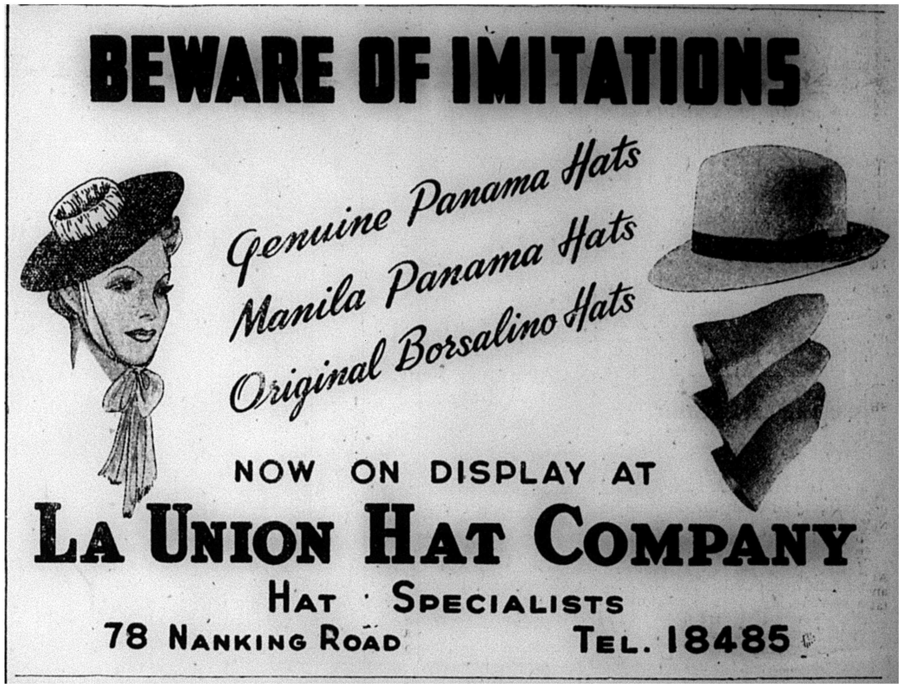 If you’ve got a cold head then you need a hat – obvious. But please none of those slightly too small cheap trilby hats that are so beloved of wanna-be hipsters these days everywhere from Shoreditch to Melbourne I’ve noted and definitely no baseball caps…anywhere, anytime. No chavvy baseball caps I’m sure at the La Union Hat Company on the Nanking Road, just proper men’s headwear and charming ladies wear. This ad of course actually from the summer months of 1940 when Panama’s and Borsalino’s were the thing.