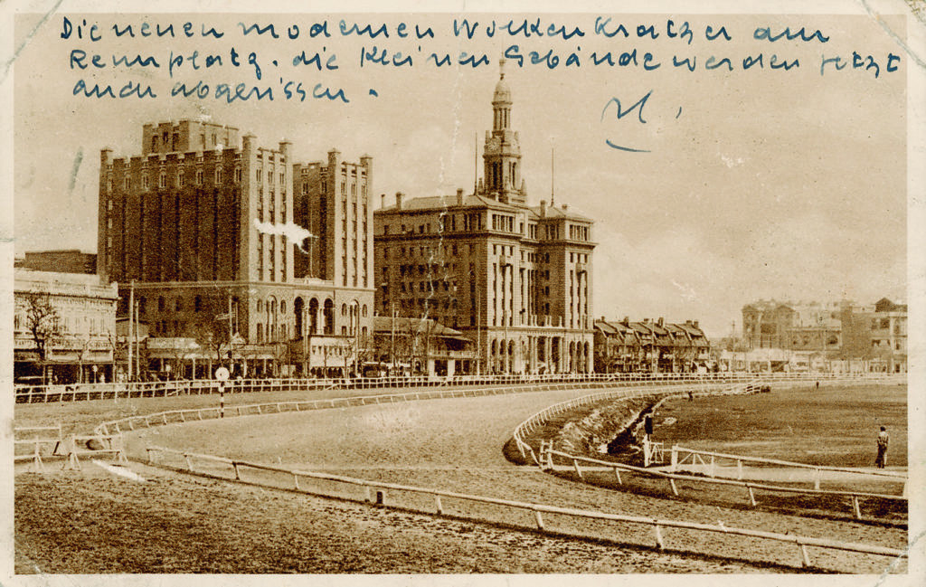 Shanghai Racecourse and Bubbling Well Road postcard, 1930