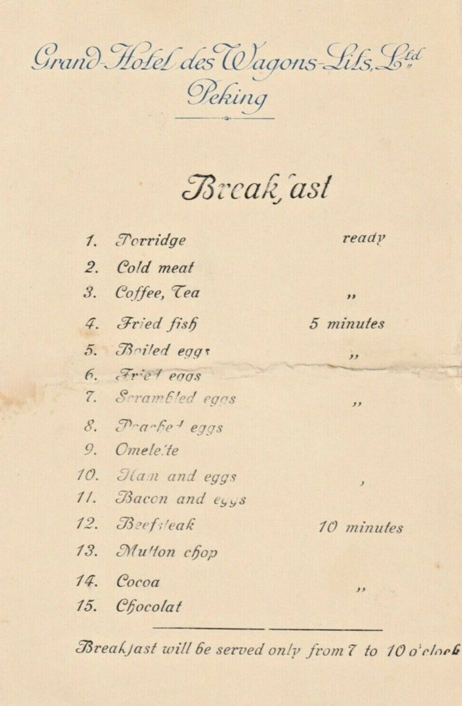The Grand Hotel des Wagons Lits Breakfast Menu