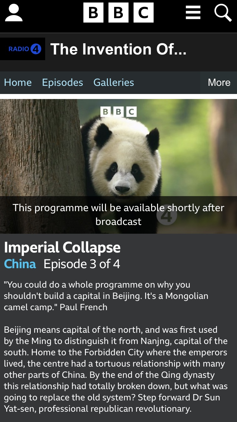 Posted: May 6th, 2024 | No Comments »Heads up: tomorrow (Monday) – ep3 of BBCRadio4 at 11am GMT & then BBCSounds The Invention of China with Misha Glenny on the end of the Qing & the Chinese Republic (& me on why BJ is an odd spot for a capital city)…