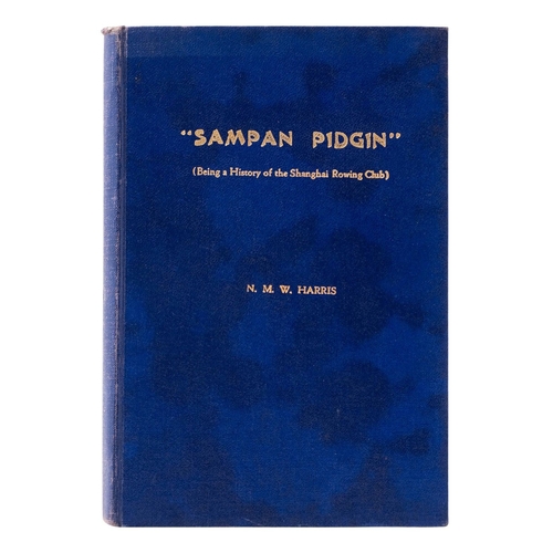 A rare copy of Nigel M. W. ‘Harris’s Sampan Pidgin: Being a History of the Shanghai Rowing Club, (Shanghai: The Mercantile Printing Co., 1938). The Book remarkably remained in the Shanghai Rowing Club during the period of the Japanese Occupation and was recovered by the author from the Club House in May, 1949, shortly before Communists troops entered Shanghai. Harris, as well as obviously a member of the rowing club, was an RAF Squadron Leader in Shanghai and Hong Kong.