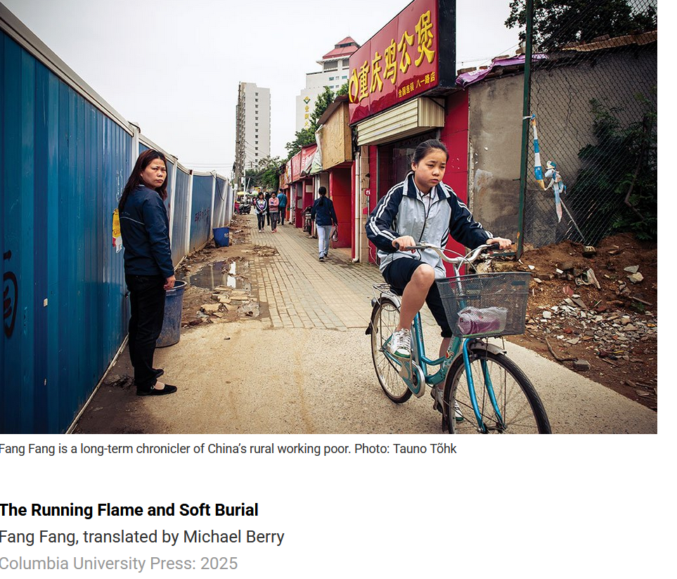 Posted: December 17th, 2025 | No Comments »For English language readers outside China, these translations of The Running Flame and Soft Burial help to reframe Fang Fang as a writer of more than Wuhan Diary. I review these two new translation from Fang Fang (and Michael Berry) from Columbia University Press – sorry it’s paywalled but now is a great time to take out a subscription to the Mekong Review – (click here to subscribe)…