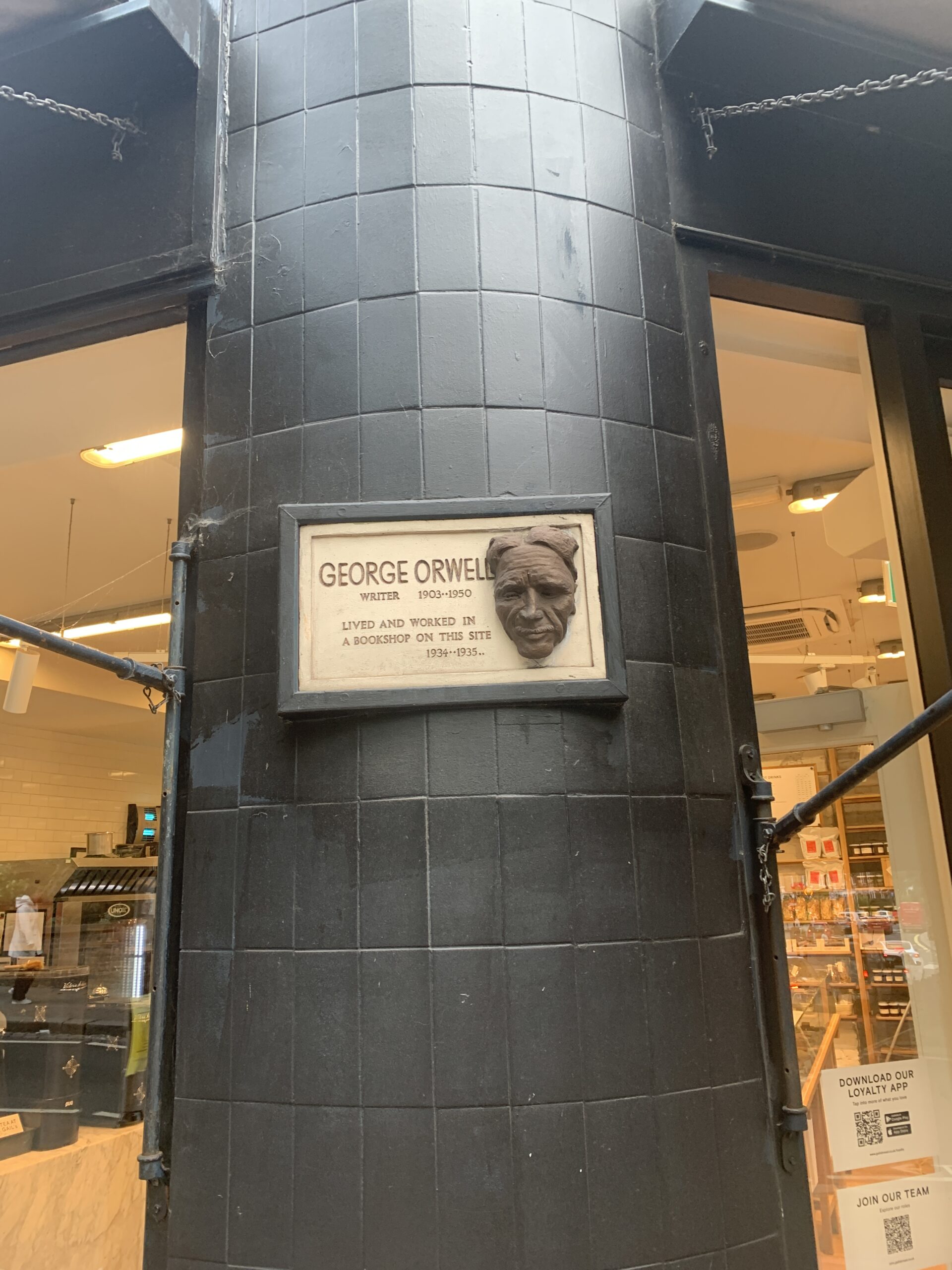 second-hand bookshop in South End Green run by Francis and Myfanwy Westrope. Today that bookshop is a Gail’s Bakery though a plaque has been erected as well as a sculpture of Orwell on the front of the building. He worked there for fifteen