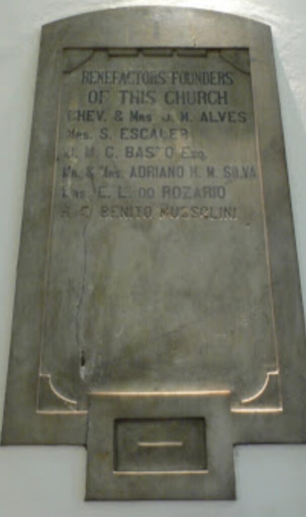 Interestingly both Benito Mussolini and his son-in-law Count Ciano donated money to the church, built in 1932. Mussolini’s name is listed on a founding benefactors stone plaque inside (though later obscured). At the time Ciano was the Italian Consul in Shanghai and probably made the donation on the Italian fascist dictator’s behalf.