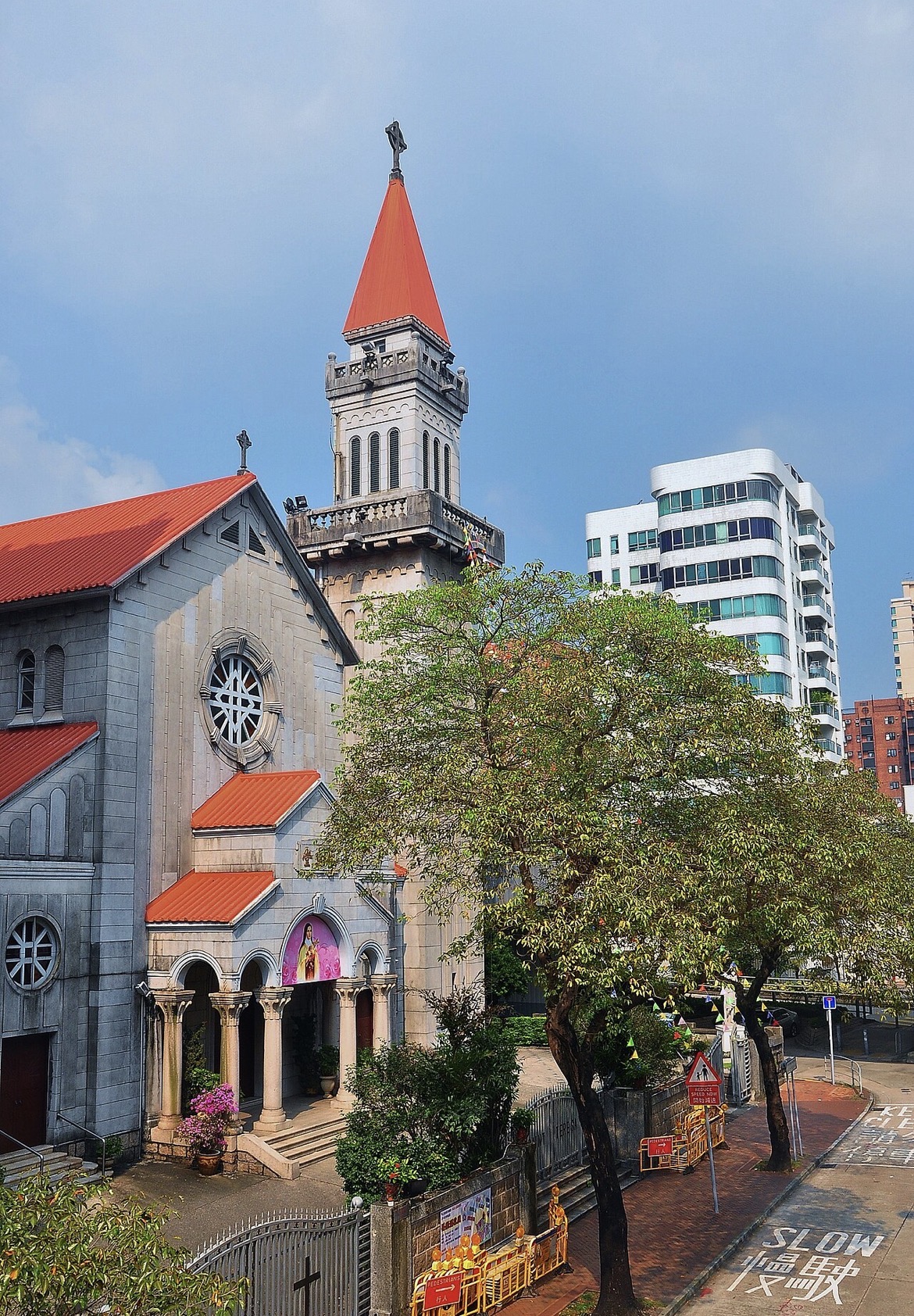 One stop is St Teresa’s Church, close to Prince Edward Road West and to the Maryknoll Convent School. It’s an attractive Neo-Romanesque design with Neo-Byzantine influences designed by Adalbert Gresnigt, a Dutch Benedictine monk and artist.
