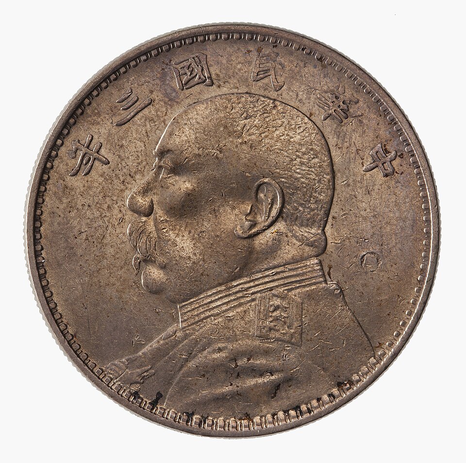 From 1914 to 1919, all coinage in the series was marked as Year 3 (1914) – as below. Mints began to strike coins with new dates in 1920 (Year 9), although differing mints marked them as Year 8, 9, or 10, and in the following years no mint consistently updated the date to match the year of production. Missionary Mildred Cable reported that Yuan Shikai dollars circulated in Gansu in 1926, but only coins featuring Year 3 dates were accepted at full value, as coins with dates following Yuan’s death were suspected to be counterfeit. The Fatman Dollar was eventually replaced by the “Momento Dollar” which featured Sun Yat-sen. China then abruptly abandoned the silver standard in 1935 and so large amounts of paper currency were introduced until 1945 when, due to hyperinflation, Mints in the Nationalist-aligned southern and western provinces returned to minting silver coinage in an attempt to stabilize the currency.