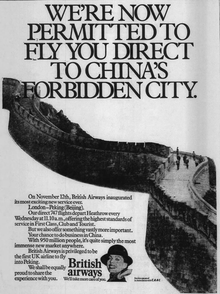 The China-Britain Business Council online magazine Focusis celebrating 50 years since the establishment of ambassadorial relations between China & the UK – I’ve dug up a few old stories – here’s the story of British Airways first flight to Beijing in 1980 – click here to read