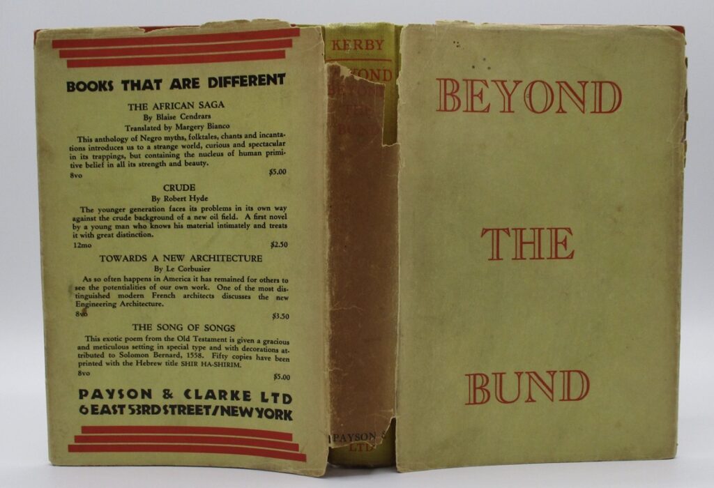 Philip Kerby‘s Beyond the Bund (you can download the whole book as a pdf here), published in 1927 by Payson & Clarke. Kirby was the husband of Kate Kerby, mentioned yesterday, and her book An Old Chinese Garden’s dedicatee. I know little about the Kerby’s except that they must have lived in Shanghai (Kate’s publisher was based in Shanghai) and were most probably Americans (Philip’s publisher was American). The New York Times quite liked it…. but The New Yorker thought it “dullish”.