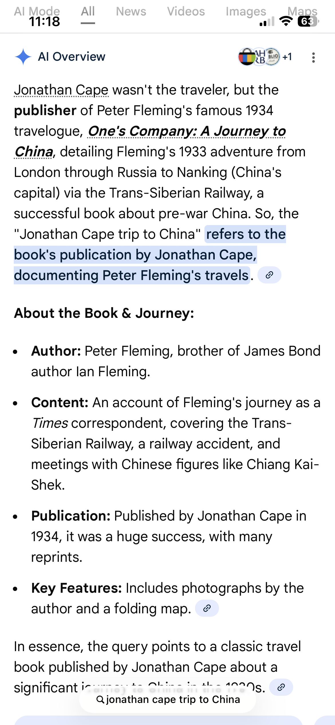 This is an opportunity to show how dumb AI is…. I happen to know (via old school tech, like a book) that the publisher Jonathan Cape undertook a round-the-world trip in 1934.