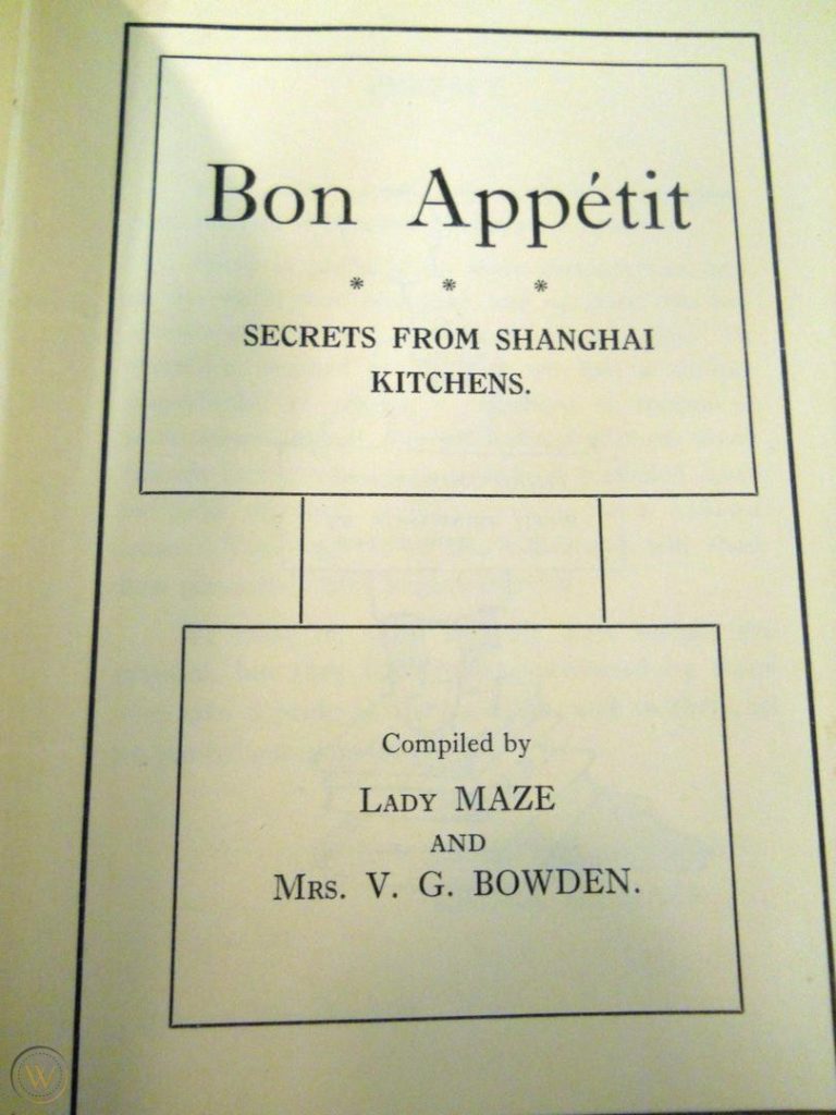 And, also courtesy of Bill, a recipe for Yorkshire Pudding in the expatriate-written cookbook Bon Appetit: Secrets from Shanghai Kitchens (1940). Lady Blackburn, wife of Sir Arthur Blackburn, contributed the recipe to the book. Blackburn (K.C.M.G., C.B.E.) was at the time the Chinese Counsellor at the British Embassy Offices in Shanghai. The book was compiled by Laura G Maze and Dorothy Bowden (more on them tomorrow).