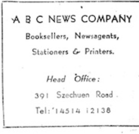 The ABC News Company had several branches around the International Settlement that popped up over the interwar years. Their major branch and offices were always at 391 Szechuen Road (Sichuan Lu)……