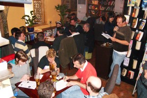 At the Suzhou Bookworm. Tell your taxi driver the intersection of Wu Que Qiao and Shi Quan Jie. Or, take the subway to the Lindun Lu stop in downtown Suzhou and take a 10 minute ride by pedicab or five-minute taxi ride to the Bookworm. It’s a fifteen minute walk due south from the Lindun Lu subway station: Gongyuan Lu (across from the old Sofitel Hotel – now Marco Polo), cross Shi Zi Jie to Wu Que Qiao. The Bookworm will be on your left at the intersection of Wu Que Qiao and Shi Quan Jie.
